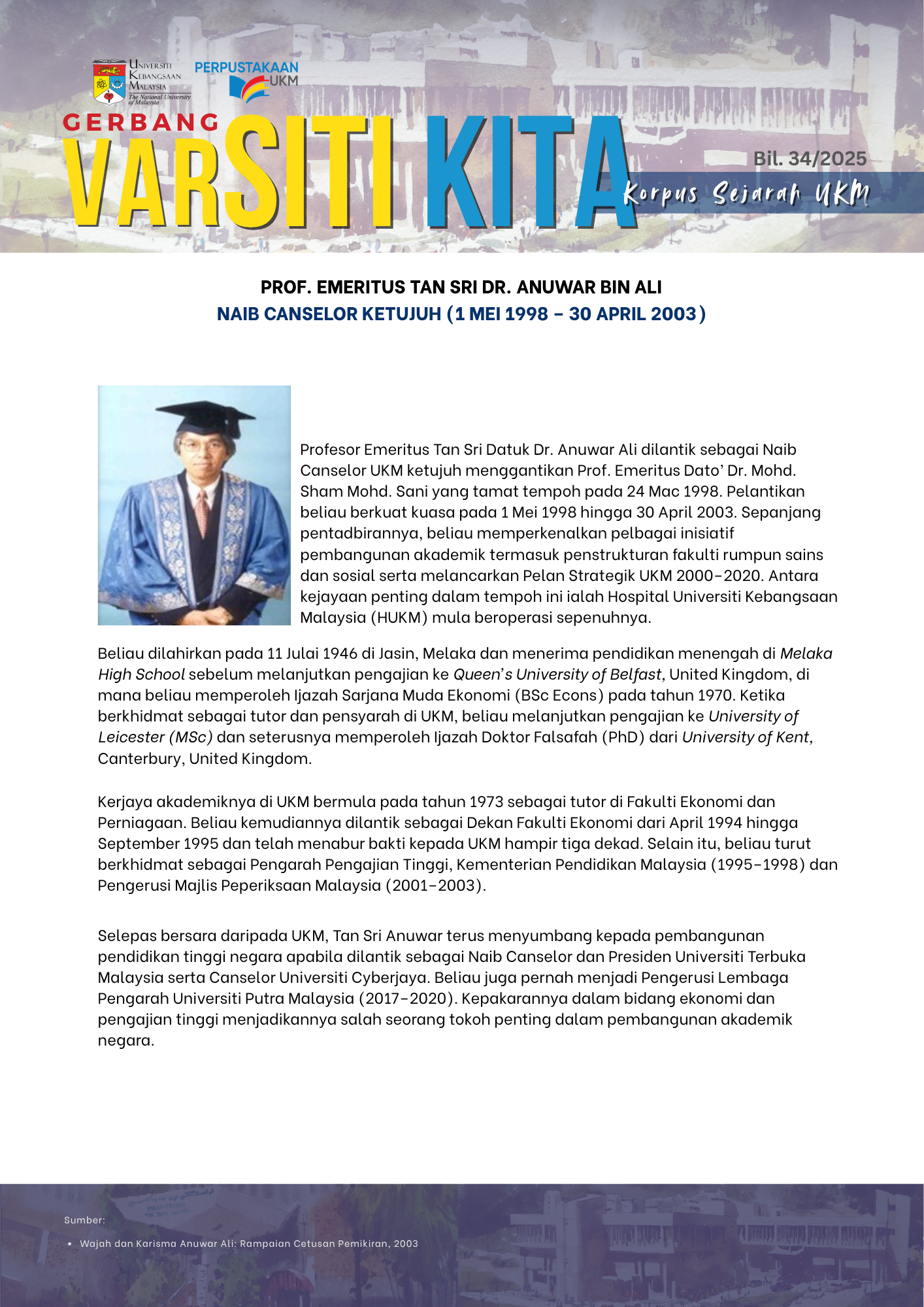 | Other Titles: | Naib Canselor Ke - 7 (1 Mei 1998 – 30 April 2003) |