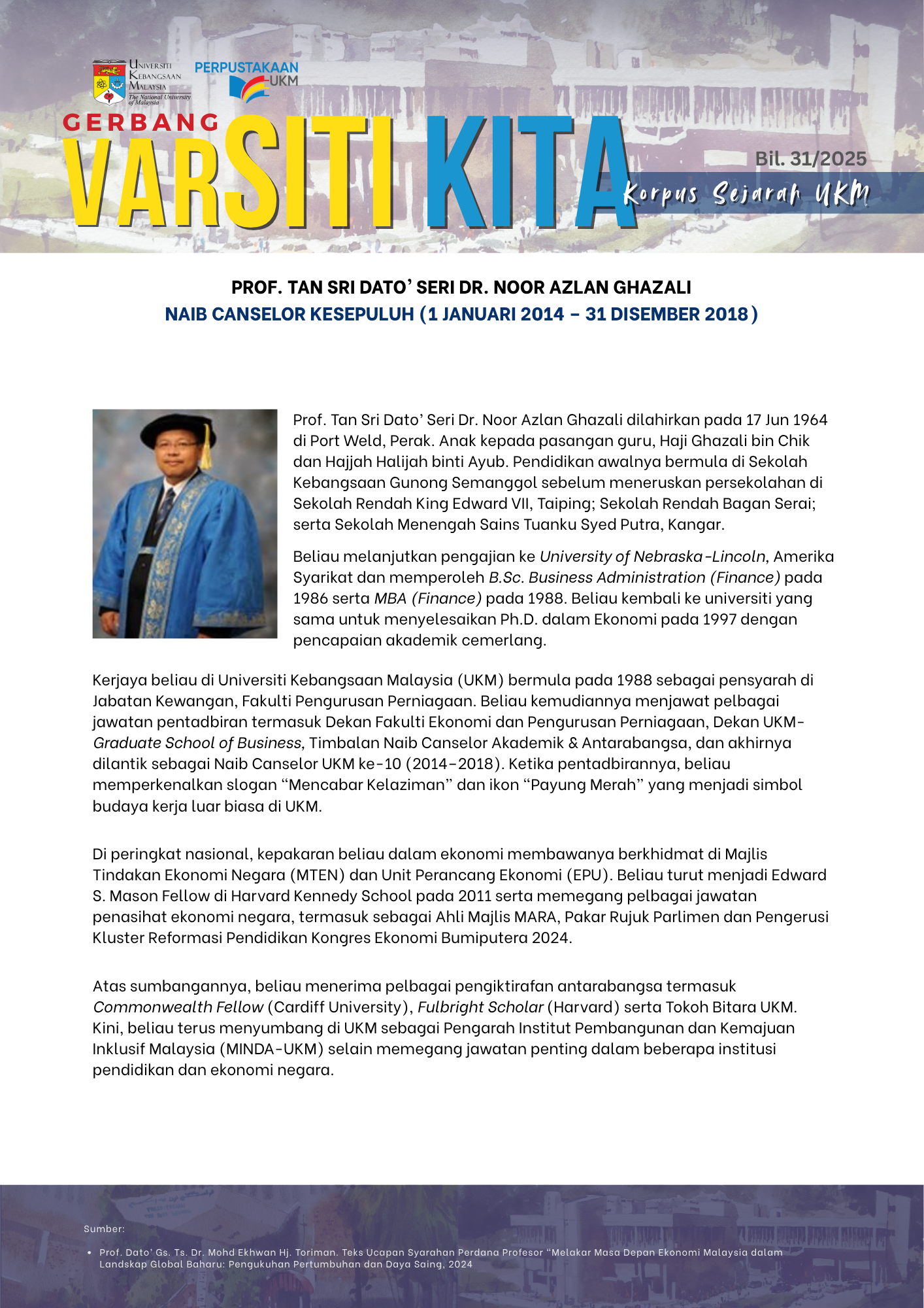 | Keywords: | Profil Naib Canselor UKM Prof. Tan Sri Dato’ Seri Dr. Noor Azlan Ghazali |
